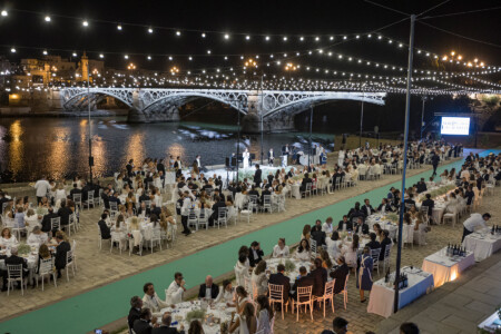 La mágica noche del viernes 13 de septiembre, el emblemático Muelle de la Sal, a orillas del Guadalquivir, se convirtió en el escenario de la XVIII Gala de los Premios Escaparate, una cita anual que celebra el aniversario de la revista de vida social andaluza Escaparate, fundada en el año 2006 por el periodista sevillano Mario Niebla del Toro Carrión. Con Sevilla como testigo, la ciudad se cubrió de blanco en honor a estos prestigiosos galardones, que este año contaron con la presencia de S.A.I.R. Don Maximiliano de Habsburgo, Archiduque de Austria, como Padrino de Honor, y S.A.S. La Princesa Victoria de Hohenlohe-Langenburg, Duquesa de Medinaceli, como Madrina de Honor. A su vez, el Excmo. Sr. Don Francisco de Borbón, Duque de Sevilla, actuó como Presidente de Honor.